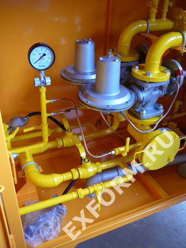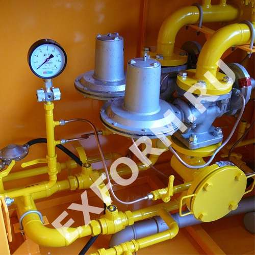 В случае ремонта оборудования газ поступает к потребителю через резервную линию. При необходимости используются обе линии одновременно, пропускная способность при этом возрастает. На газопроводе после входного крана и после регулятора давления газа предусмотрены продувочные трубопроводы.