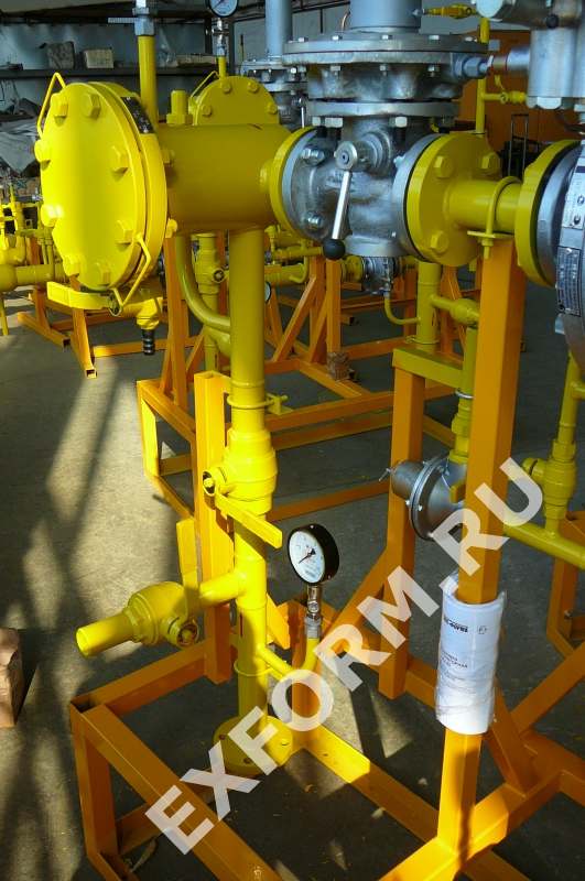 Установка ГРУ-50Н(В) выпускается в двух исполнениях: ГРУ-50Н с низким выходным давлением; ГРУ-50В с высоким выходным давлением.