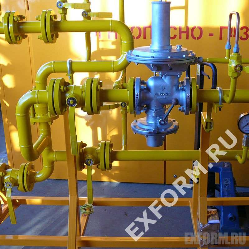 Диаметр газопровода за установкой определяется проектной организацией исходя из “Расчета диаметра газопровода и допустимых потерь давления” свода правил СП 42-101-2003.