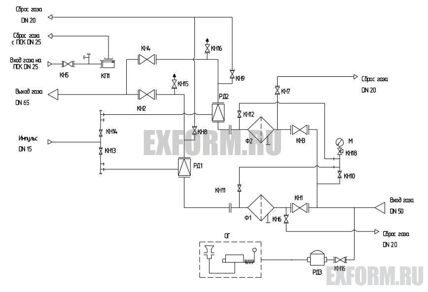 Схемы ГРПШ-07-2У1 с двумя регуляторами РДНК-1000