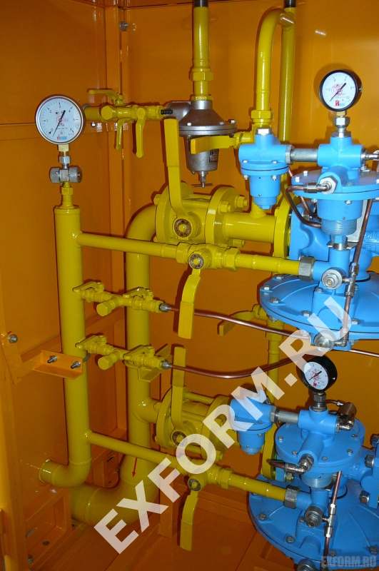 Главным прибором в ГСГО-МВ является регулятор давления газа, именно он обеспечивает стабильную и бесперебойную работу пункта. В премиум версии ГСГО выполнена на базе двух регуляторов РДП-50 с точностью поддержания заданного выходного давления в пределах 1-2%, эконом вариант выполнен с регуляторами РДБК с точностью работы 10%.