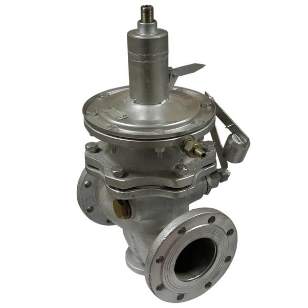 Когда контролируемое давление находится в установленных пределах, пружина нижним своим торцом через шайбу упирается в выступы стакана, крышки головки и не оказывает давления на мембрану: мембрана под давлением силы давления снизу занимает среднее положение. Гайка регулировочного винта прижата к тарелке пружины.